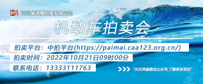 - 拍賣公告受委托,我公司定于2022年10月21日09:00在中拍平臺(tái)(https://paimai.caa123.org.cn/)公開舉行機(jī)動(dòng)車拍賣會(huì)(不接受現(xiàn)場(chǎng)競(jìng)拍)。2022年10月19日、20日在標(biāo)的物所在地預(yù)展。有意競(jìng)買者須交納競(jìng)買保證金到我公司指定賬戶并請(qǐng)?zhí)峁┯行ёC件與我公司辦理競(jìng)買報(bào)…
