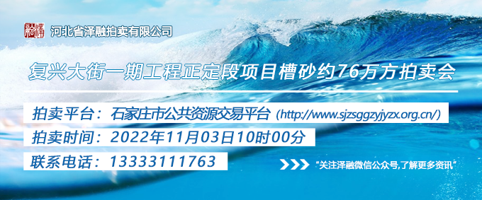 - [拍賣公告]復(fù)興大街一期工程正定段項(xiàng)目槽砂約76萬方拍賣20221103